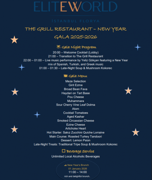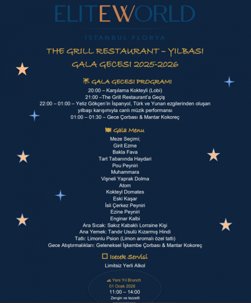 2026'yı birlikte karşılamaktan memnuniyet duyuyor olacağız. Menü detaylarımız program akışımız ve içeriklerimiz aşağıda değerli bilgilerinize sunmaktan memnuniyet duymaktayız.