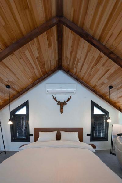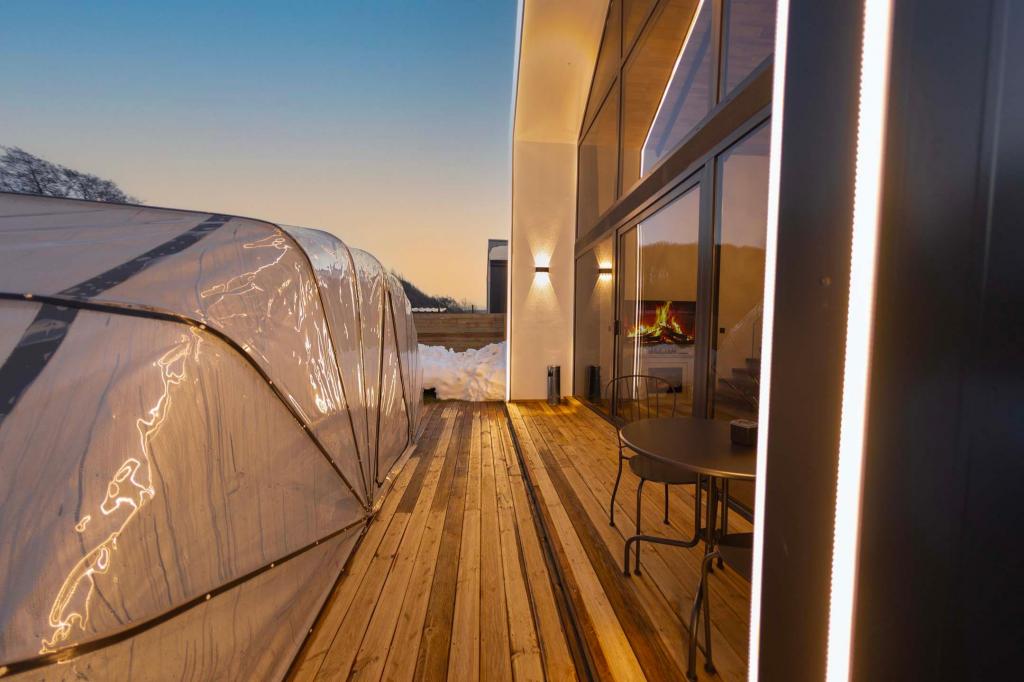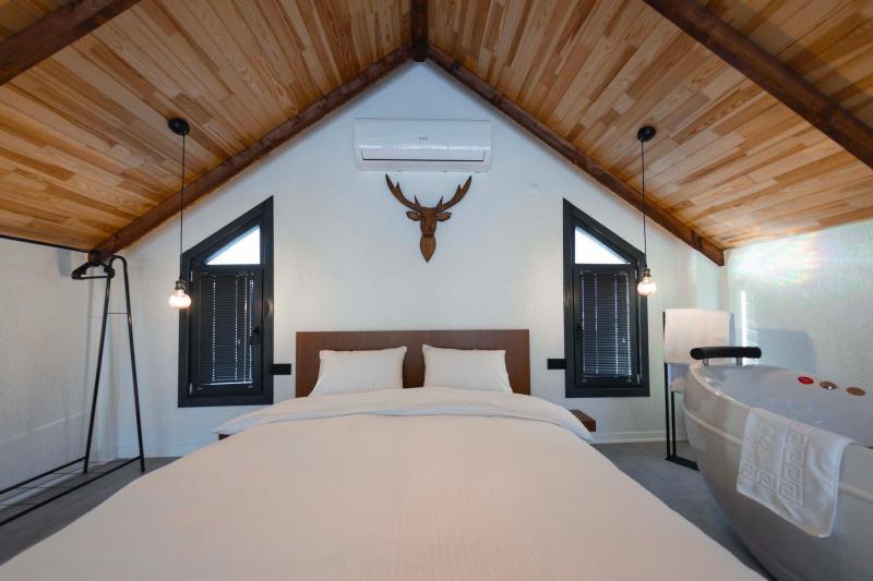 Her villada üstü açılıp kapanabilir 5×3 metre ısıtmalı üstü kapanabilir havuz, loft katta jakuzi, alttan ısıtma sistemi ve elektrikli şömine yer almaktadır. Villalar 280 m² özel bahçe alanı içerisinde konumlanmış olup barbekü alanı, oturma grubu ve hamak mevcuttur. Ayrıca konaklama süresince ücretsiz Wi-Fi ve Netflix hizmeti sunulmaktadır.